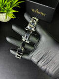 Wristive Female Muller-Inspired Casablanca Curve Crystal Edge Big Numerals Silver Bracelet