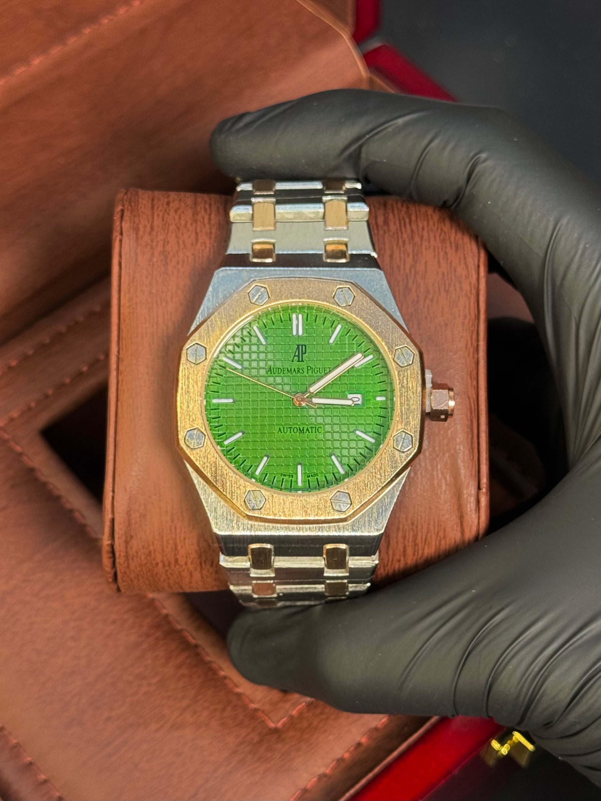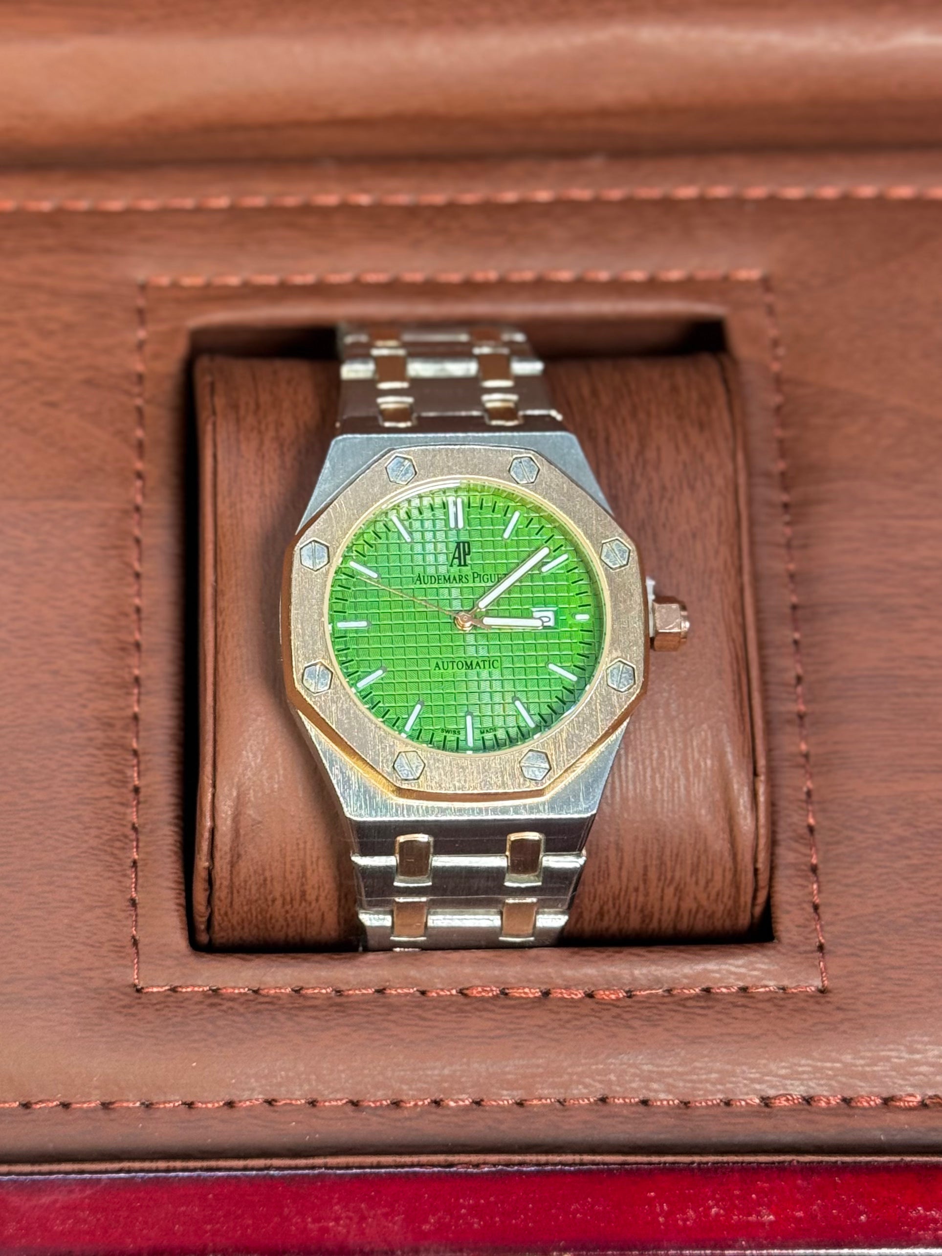 Wristive AP Royal Oak Two-Tone Watch Green Dial with Date Display | Full Logo Engraved Premium Edition