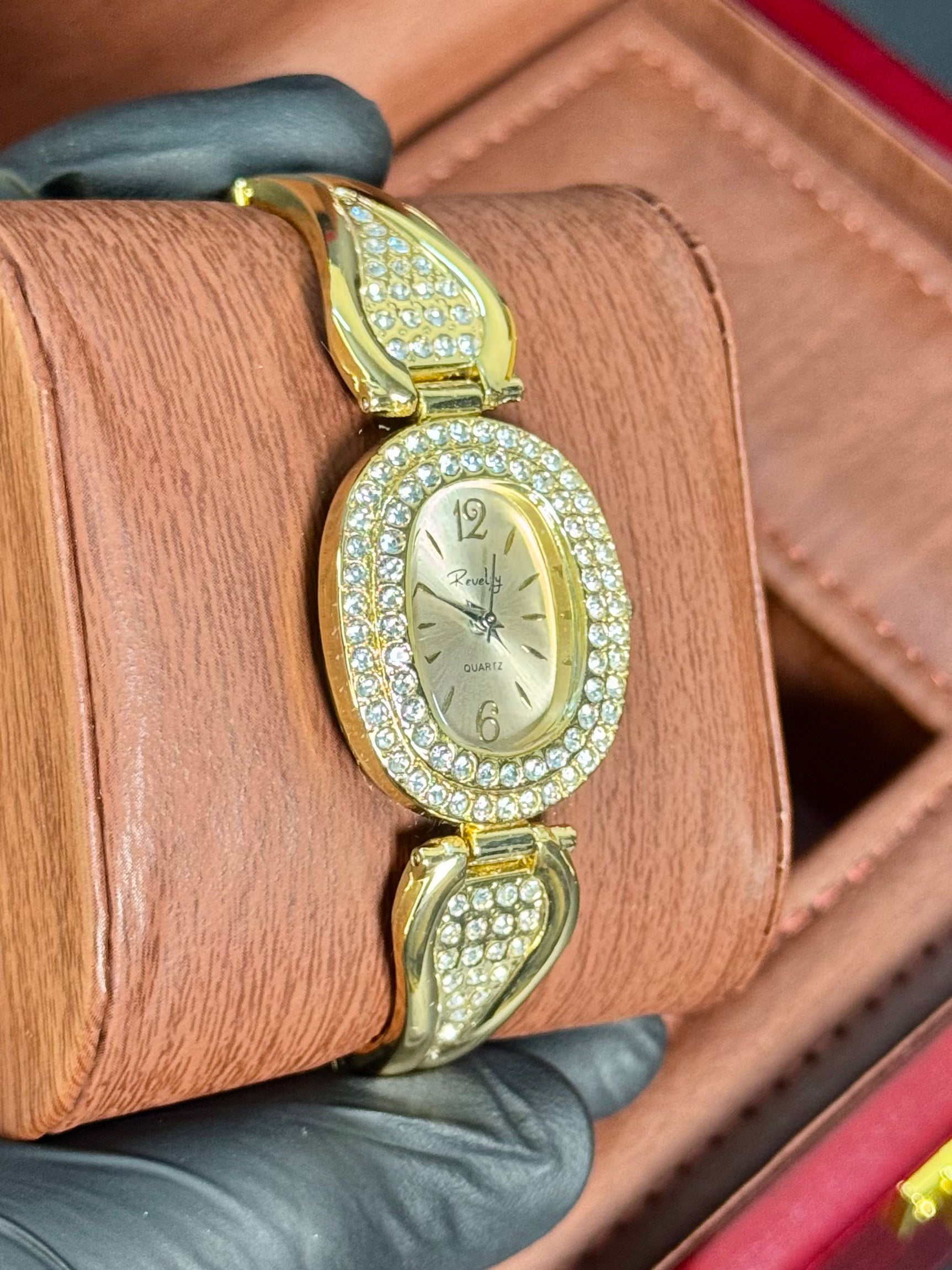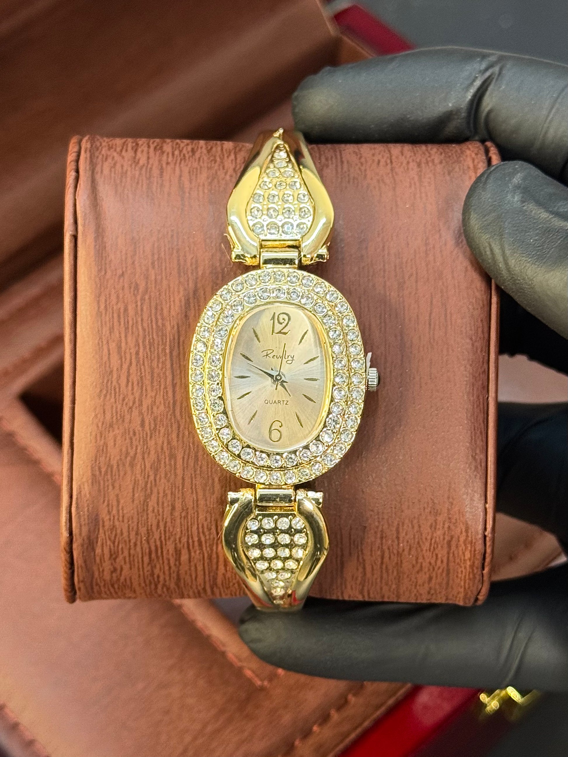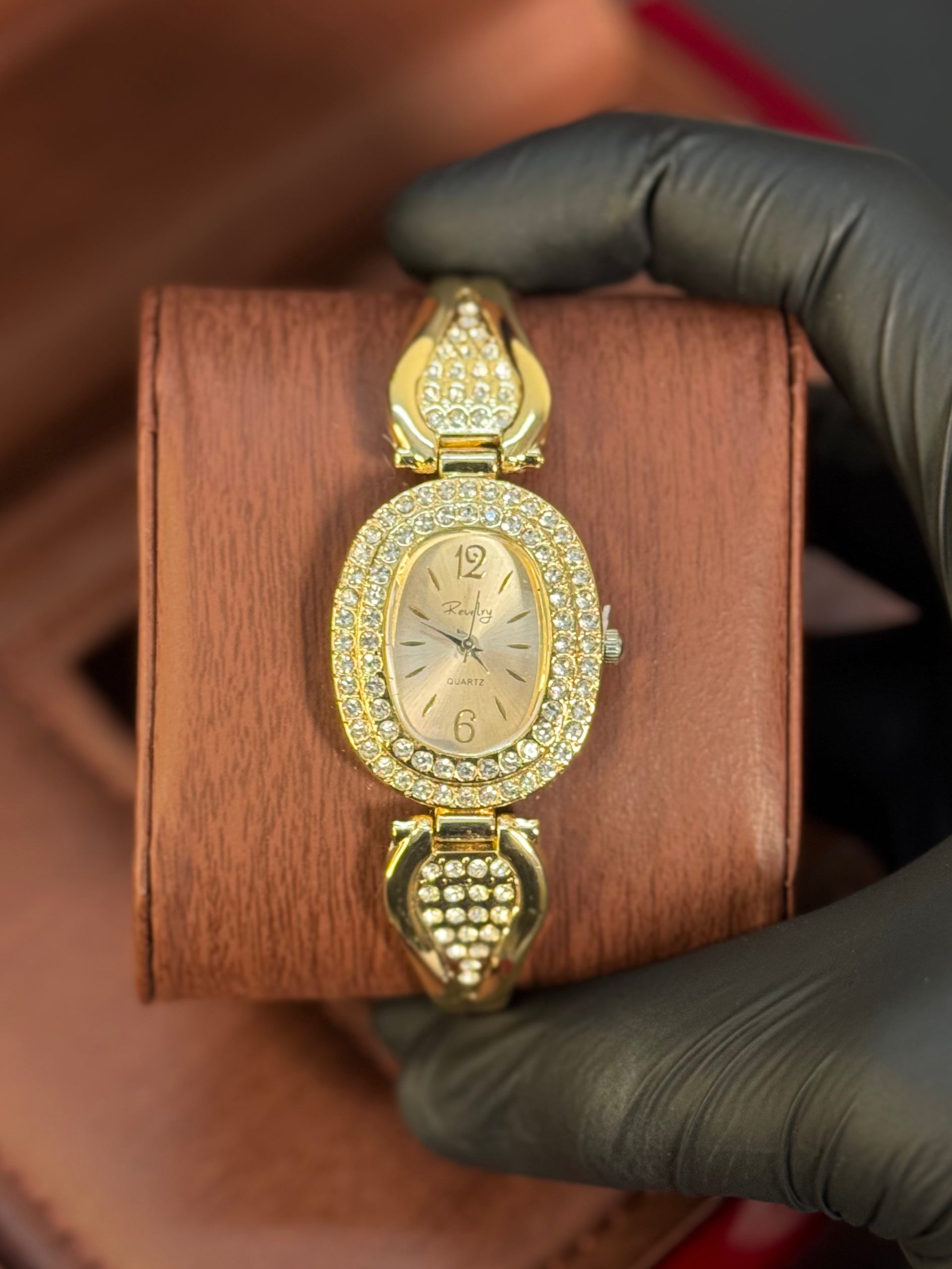 Crafted for elegance in its purest form, this CRT-inspired mini oval timepiece features a delicate champagne dial, fully framed crystal bezel, and luxury jewelry-style lugs. A golden icon of femininity and grace, it's the ultimate wristwear for formal events, bridal occasions, or timeless gifting