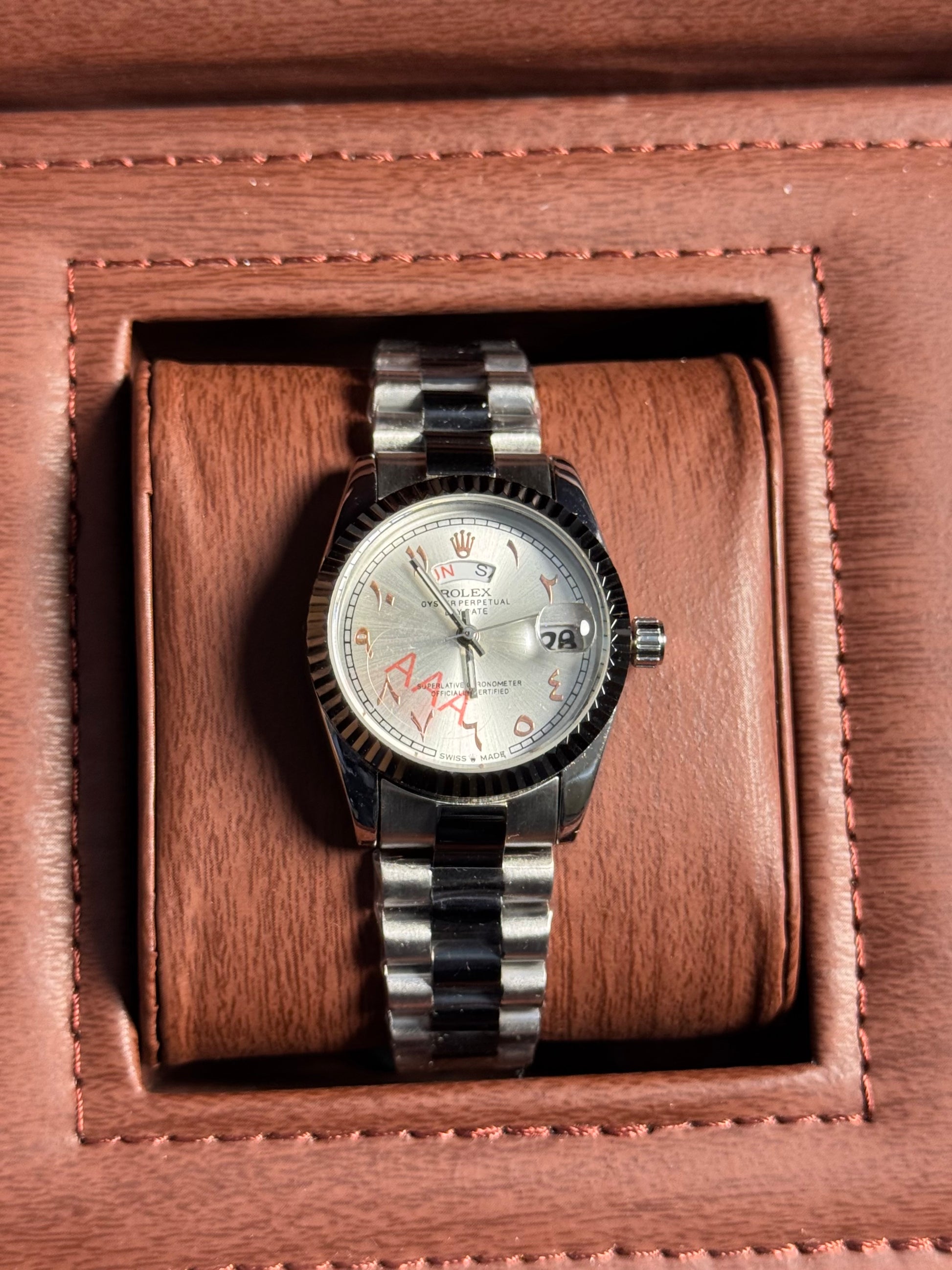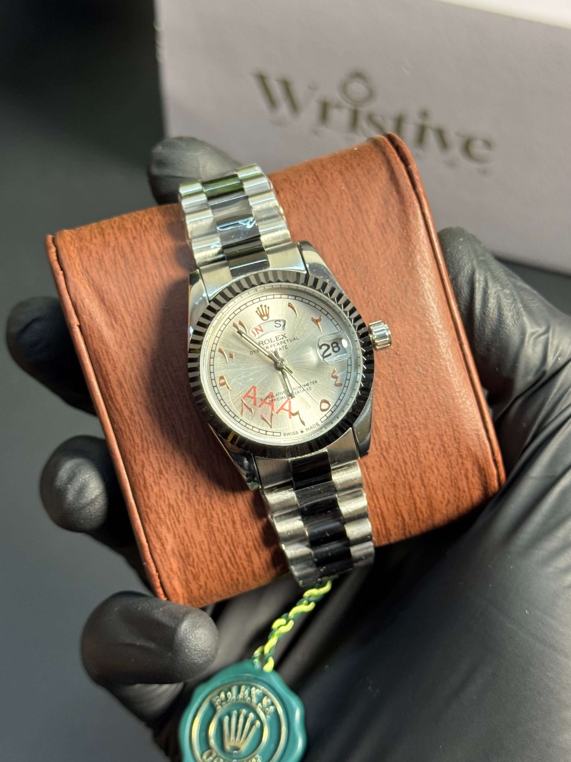 Bold, refined, and culturally inspired — the Wristive RLX Women’s Two-Tone Watch in black and silver brings together modern elegance and classic charm. Featuring a sleek black dial with Arabic numerals, this watch offers a unique and graceful aesthetic. The two-tone stainless steel finish ensures durability while adding a sophisticated touch to your wrist.