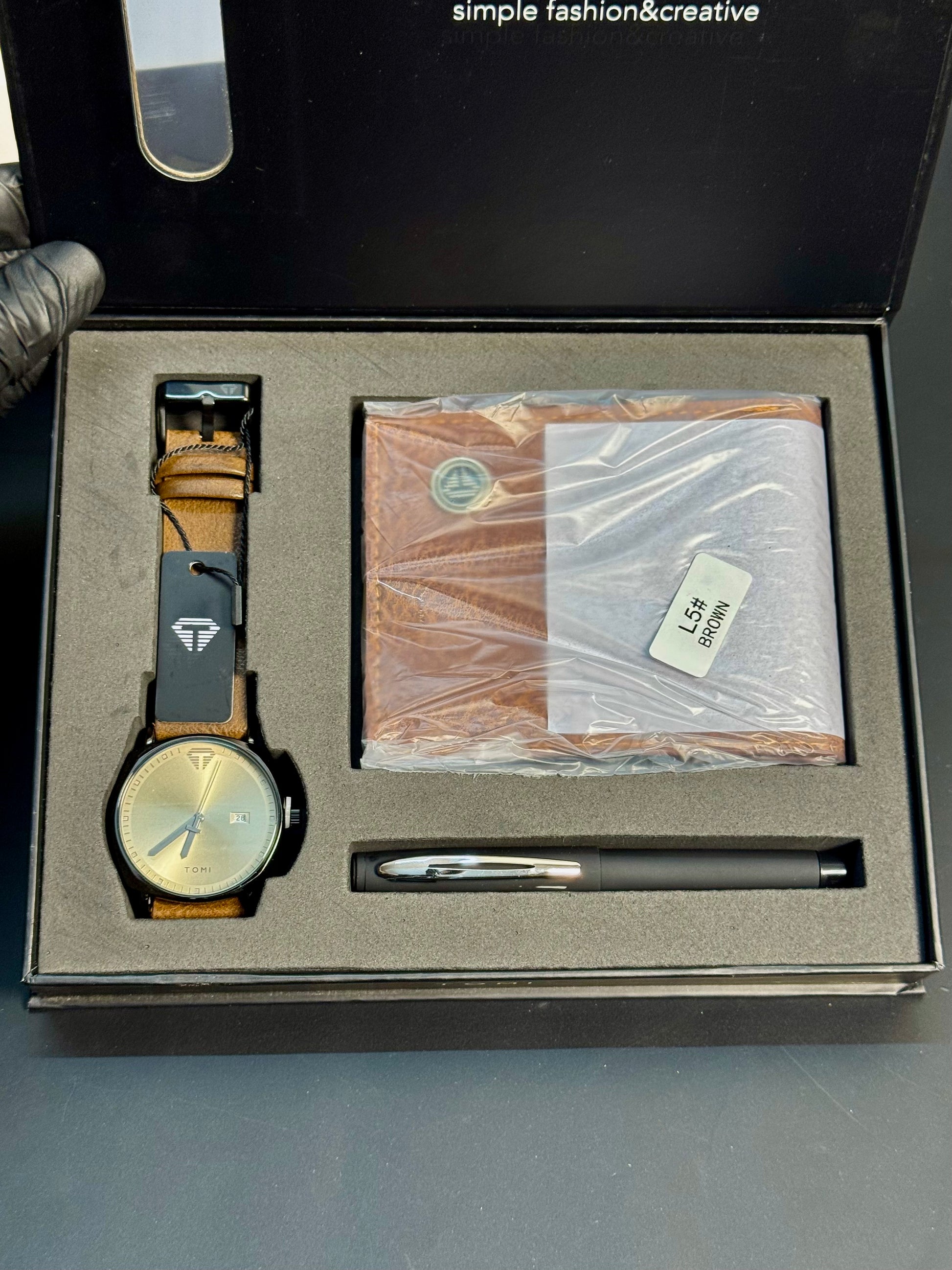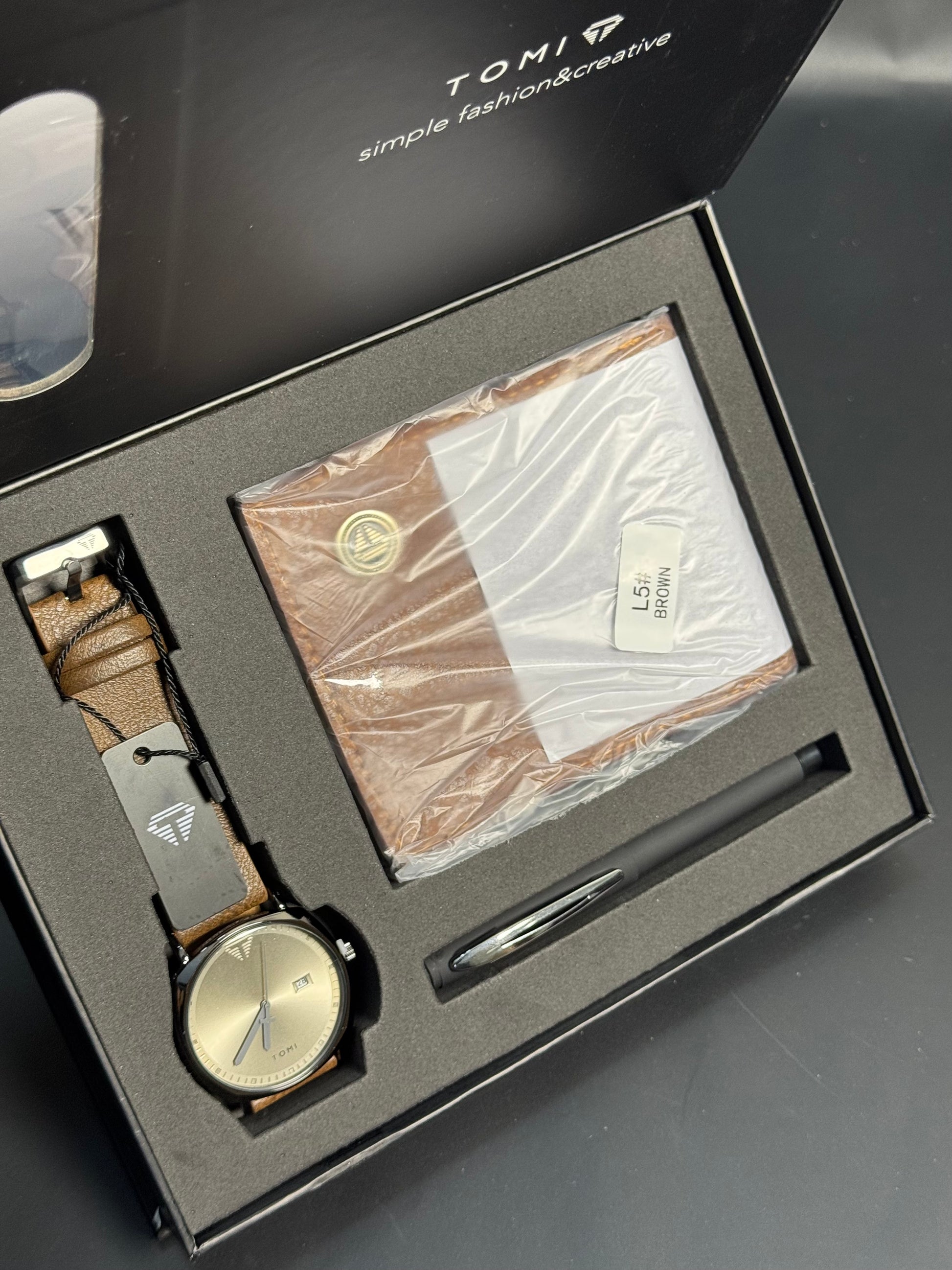Give the gift of style and sophistication with the Wristive Tomi Men’s Gift Box Collection. This premium set includes a sleek men’s wristwatch, a classic leather wallet, and a stylish pen—all elegantly packed in a luxurious gift box. Perfect for any occasion, it’s a complete accessory bundle for the modern man.